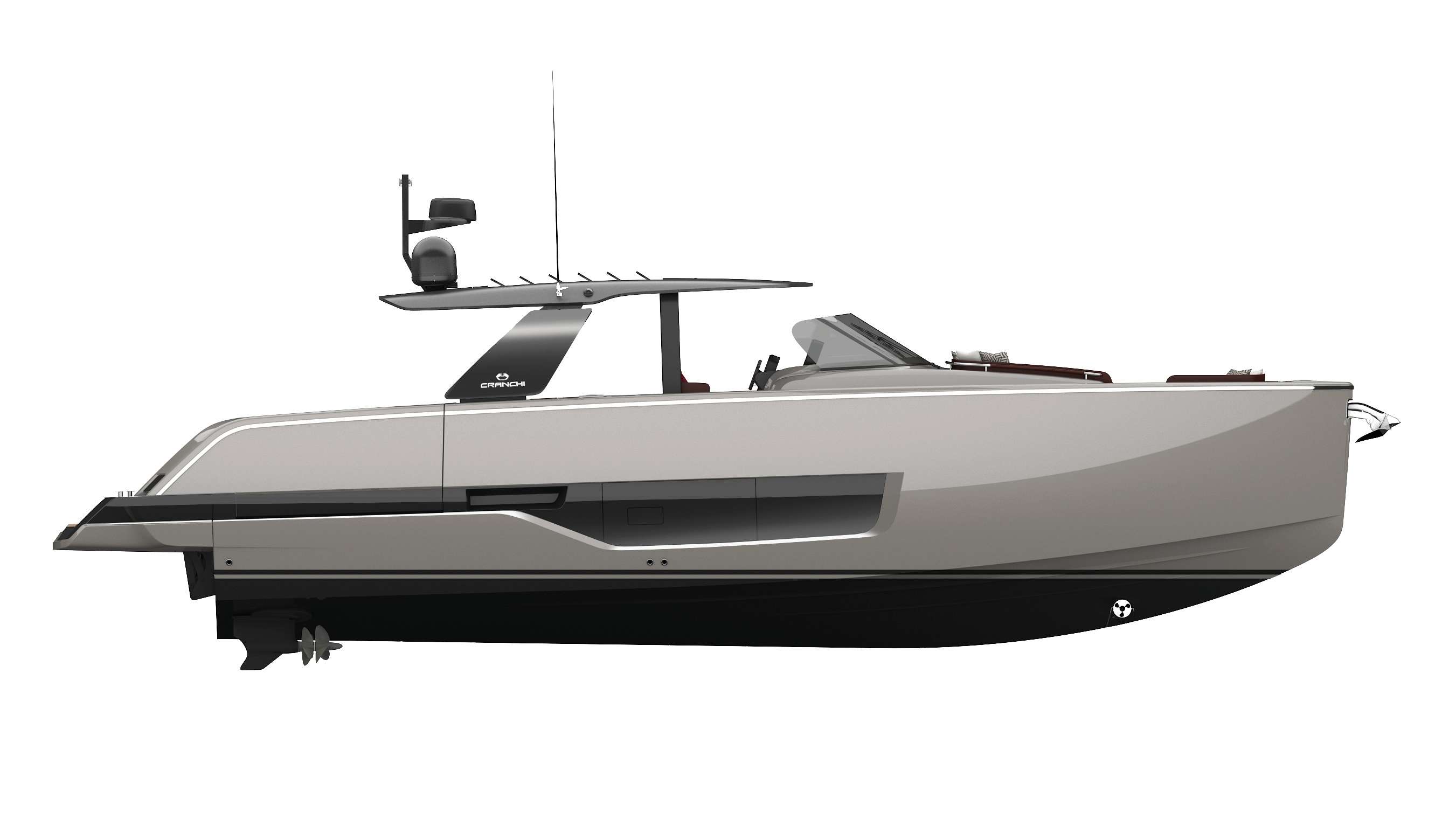 A shade of grey which conveys an immediate idea of sporty elegance and which combines perfectly with the hi-tech spirit of Cranchi’s yachts.
