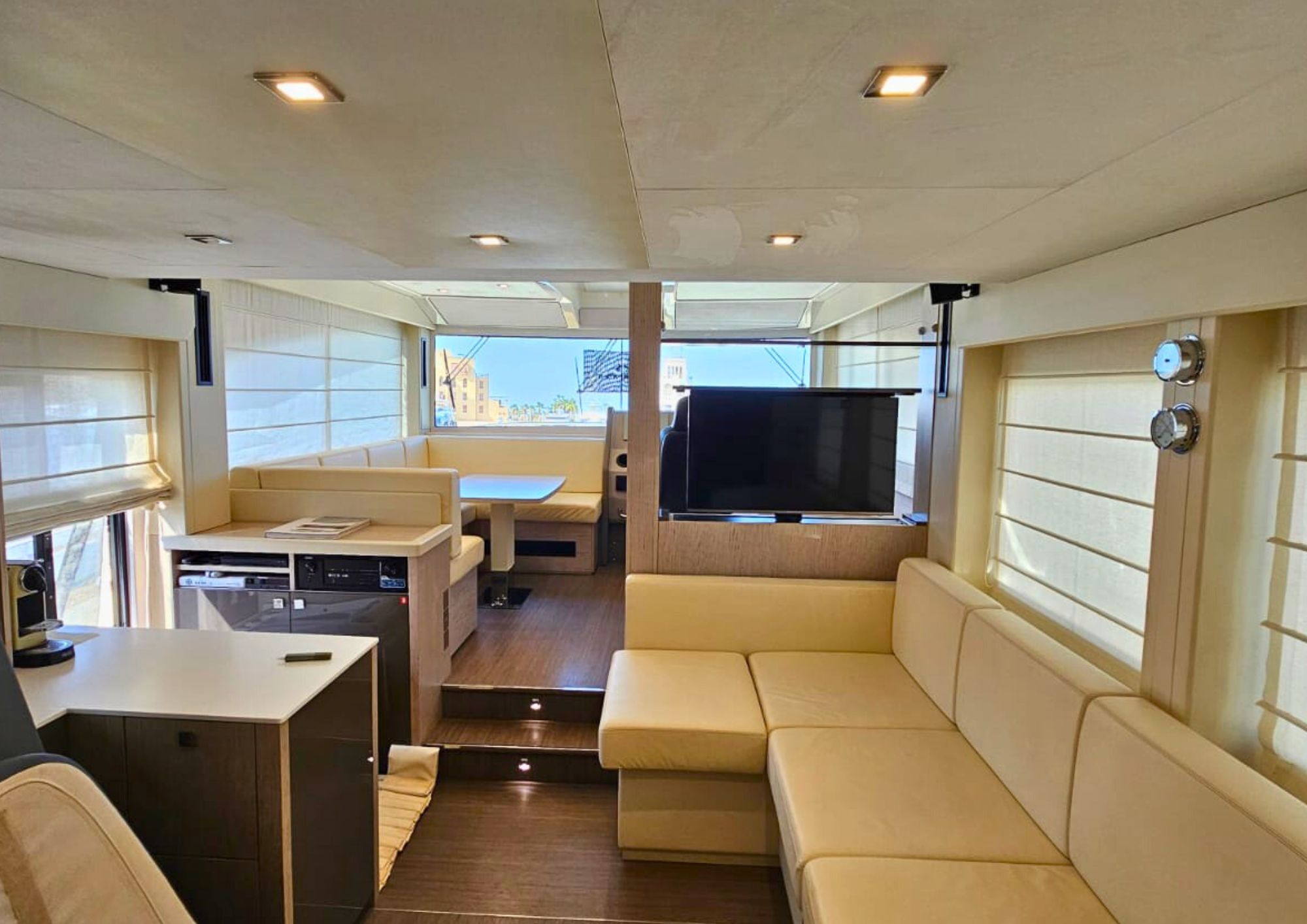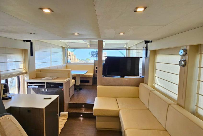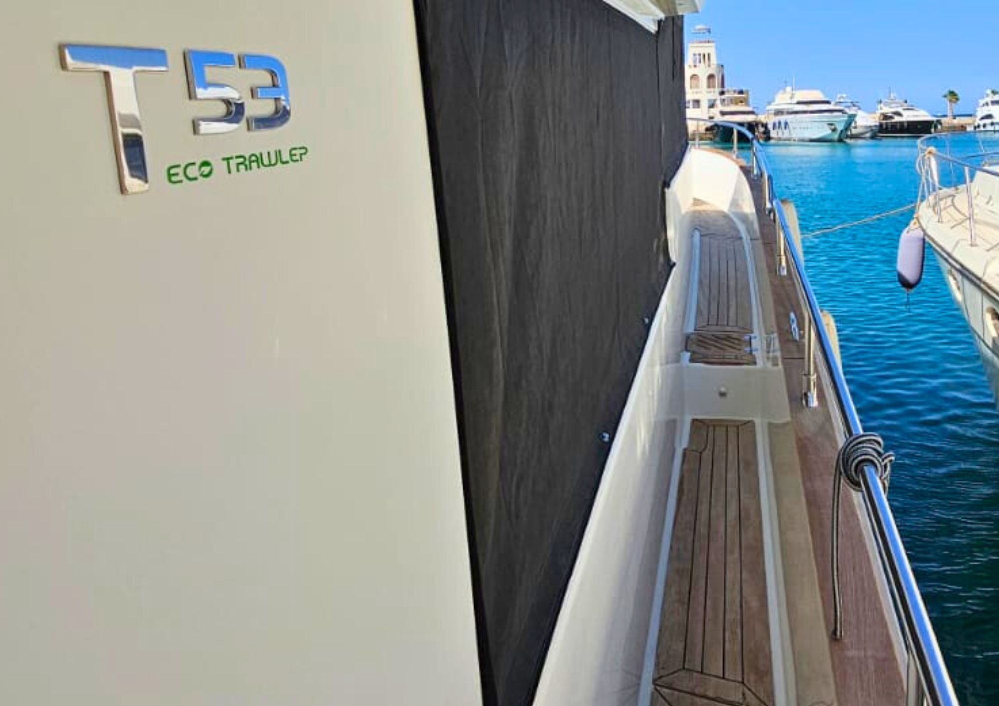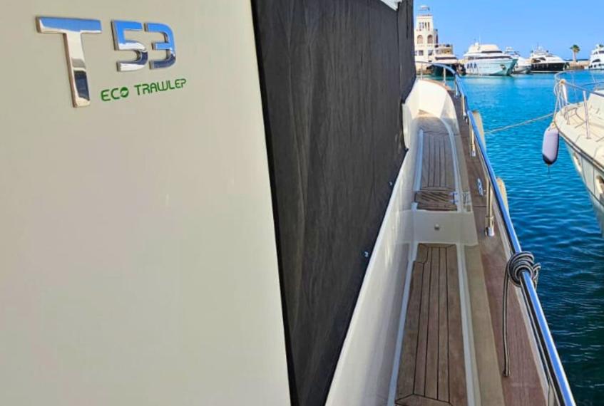 With a length of 16.76 meters and a beam of 4.95 meters, the T53 offers an impressively spacious interior suited for extended voyages or hosting guests. The bright saloon, fully equipped galley, and thoughtfully arranged cabins ensure maximum comfort, while wide side decks and a functional flybridge support safe and enjoyable outdoor living. High-quality fiberglass construction provides durability and a smooth cruising experience.