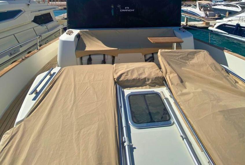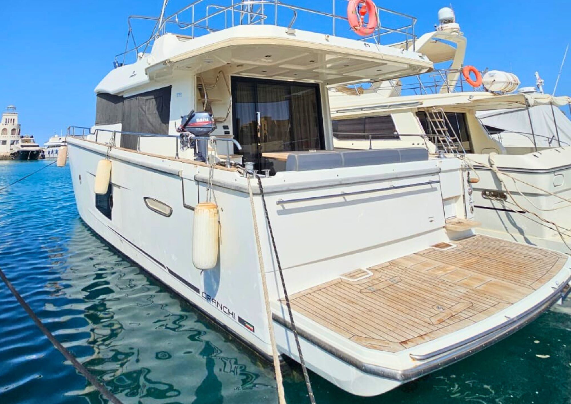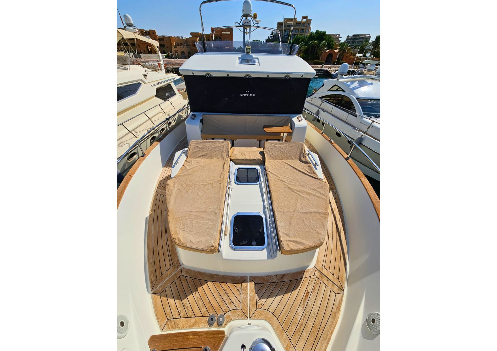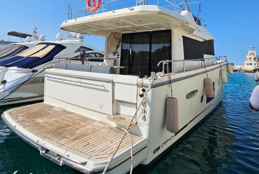 The Cranchi T53 Trawler (2017) comes fully equipped for long-range cruising comfort and reliability. Powered by twin Volvo Penta D6 engines with 435 HP and only 550 hours, it offers smooth handling supported by a joystick control system and automatic trim flaps. Its hydraulic systems—including a hydraulic gangway and a hydraulic swim platform—enhance both functionality and ease of boarding. Navigation and safety are reinforced through a complete electronics suite featuring GPS, radar, a depth sounder, and a bow thruster for effortless maneuvering. Onboard comfort is elevated with a fully fitted galley including an oven, cooktop, refrigerator, ice maker, and electric grill, complemented by a quality audio system for entertainment during extended stays at sea.