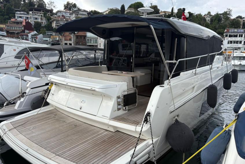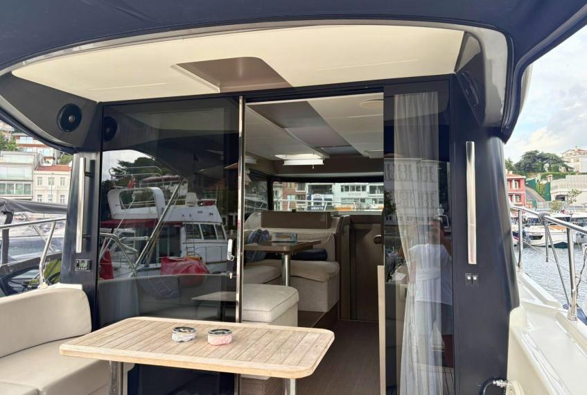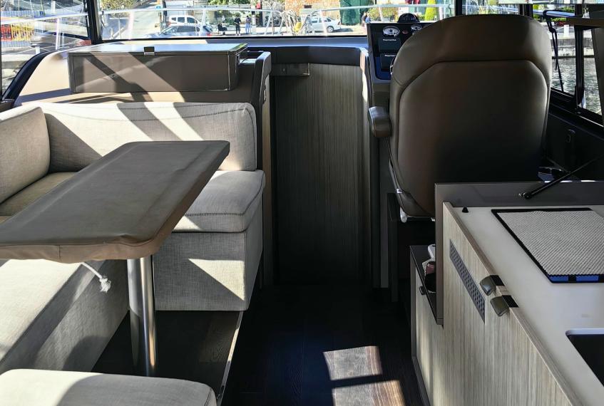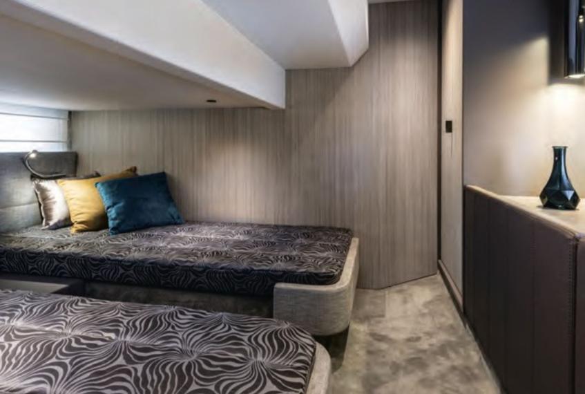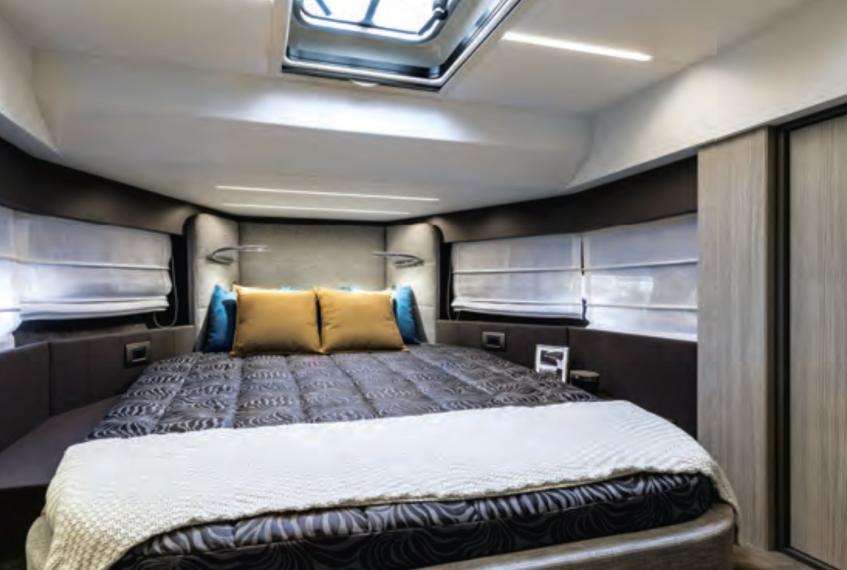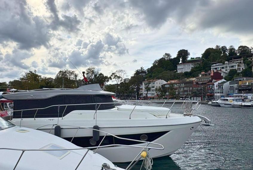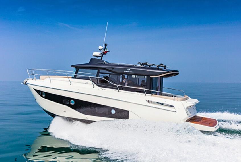 The Cranchi T36 is designed to maximize space and comfort within a versatile crossover layout. The saloon, surrounded by large windows, feels airy and bright, creating an inviting social area connected to the helm and galley. Below deck, the yacht offers two comfortable cabins—a spacious master cabin and a guest cabin—along with two well-equipped bathrooms featuring modern fittings. The galley includes a stove, refrigerator, and water heater, making the boat perfectly suited for longer stays on board. Every interior detail reflects Cranchi’s craftsmanship, blending functionality with contemporary style.