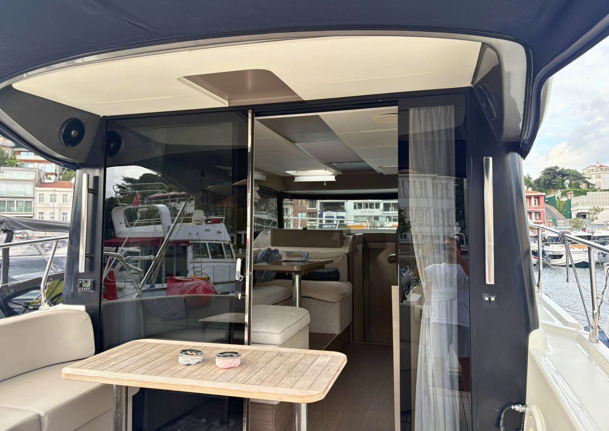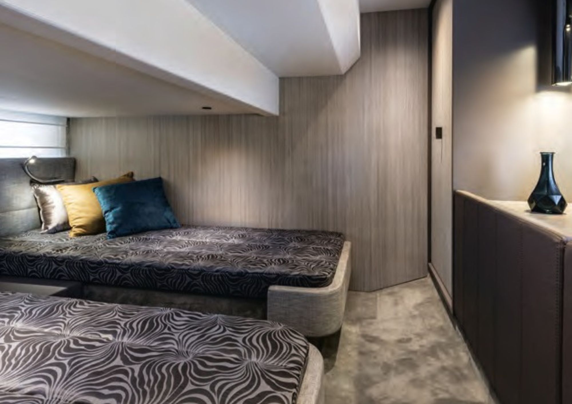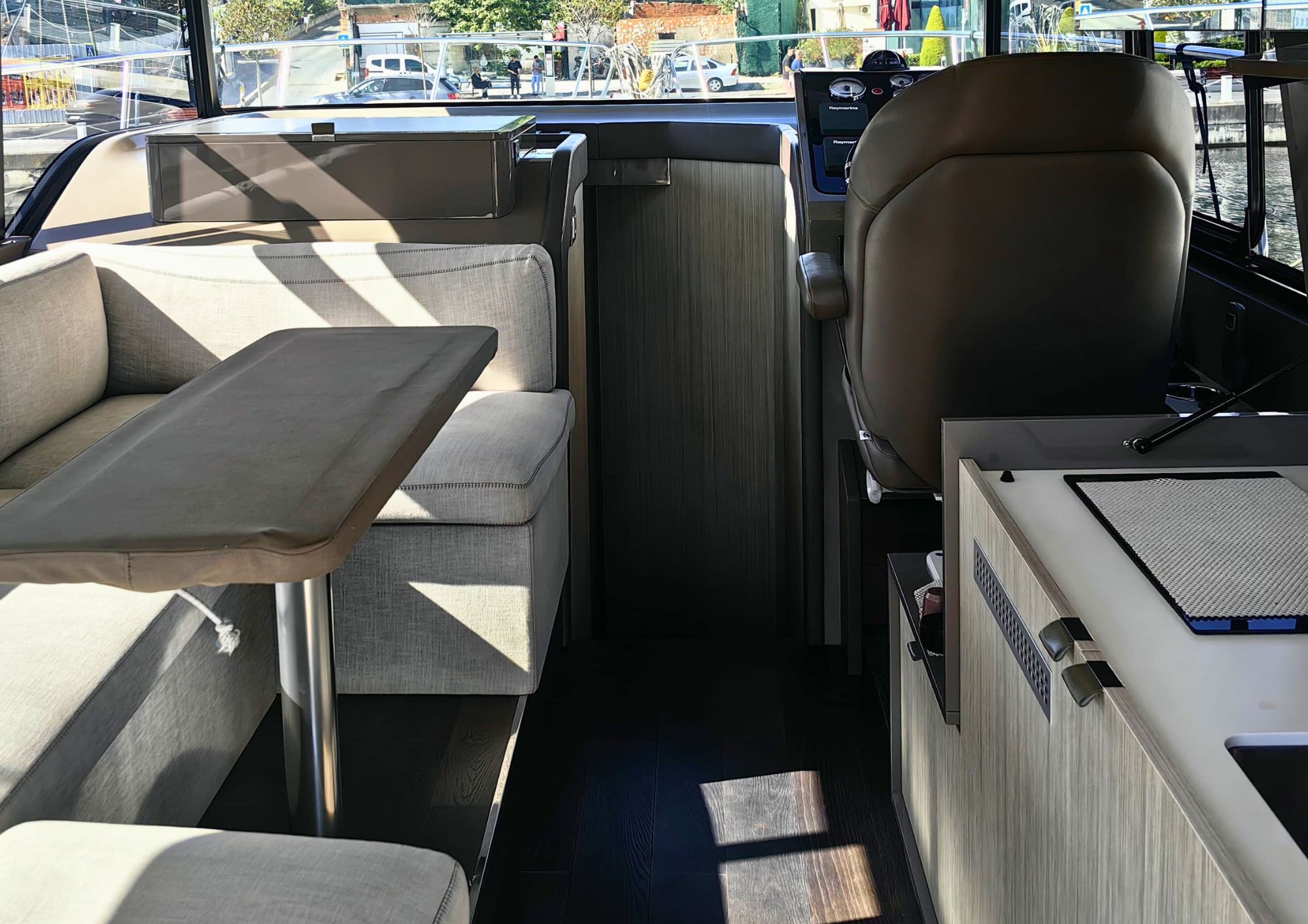 The Cranchi T36 is designed to maximize space and comfort within a versatile crossover layout. The saloon, surrounded by large windows, feels airy and bright, creating an inviting social area connected to the helm and galley. Below deck, the yacht offers two comfortable cabins—a spacious master cabin and a guest cabin—along with two well-equipped bathrooms featuring modern fittings. The galley includes a stove, refrigerator, and water heater, making the boat perfectly suited for longer stays on board. Every interior detail reflects Cranchi’s craftsmanship, blending functionality with contemporary style.