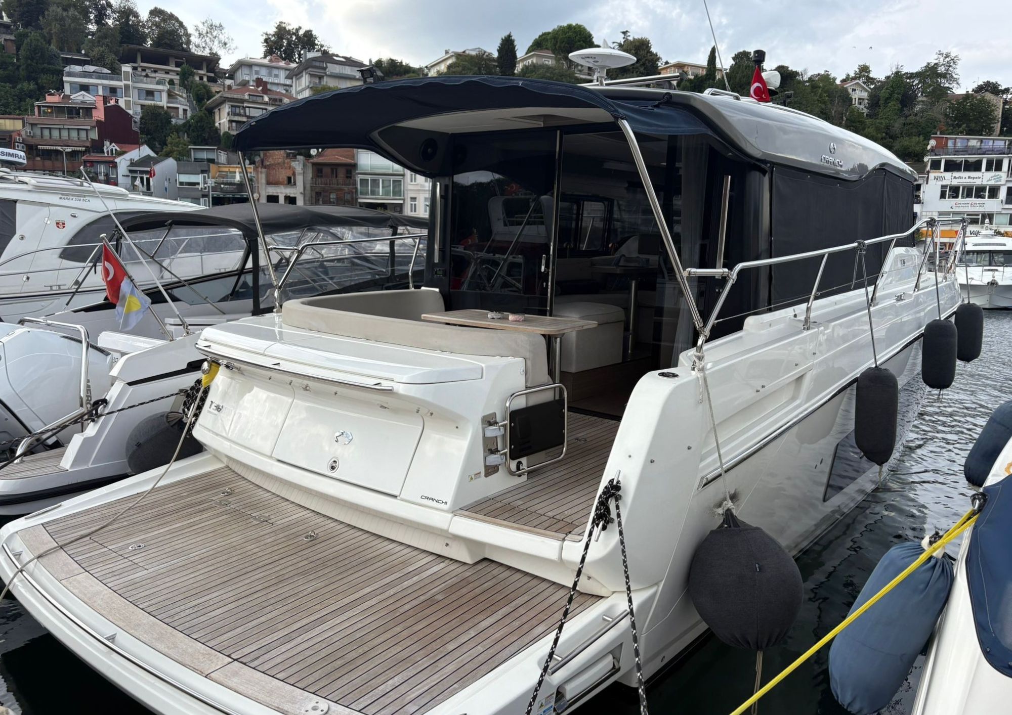 The 2020 Cranchi T36 Crossover perfectly blends the comfort of a larger yacht with the agility of a sporty cruiser. Powered by 2 x 300 HP Volvo Penta engines with Joystick Control and showing only 420 engine hours, it offers reliable performance and exceptional maneuverability. Meticulously maintained with yearly services and kept in excellent overall condition, the T36 features two cabins, two bathrooms, and a bright, spacious saloon—making it ideal for both short cruising and extended trips.