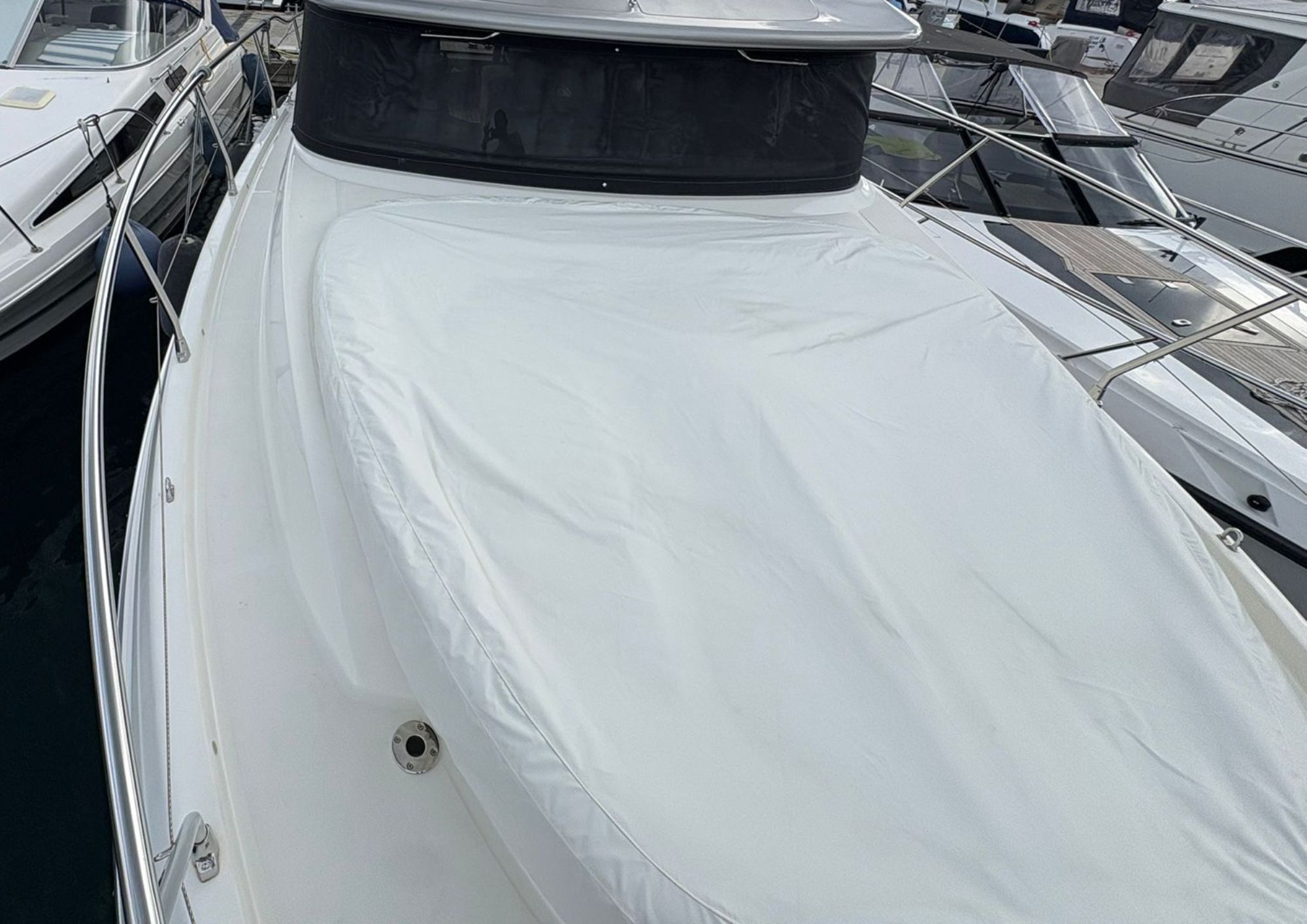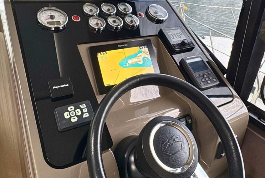 This Cranchi T36 comes fully equipped for comfortable and safe cruising, offering a comprehensive set of technical and lifestyle features. Navigation is supported by Raymarine autopilot, chart plotter, radar, GPS, VHF, depth and speed instruments, compass, a searchlight and a chain counter, all complemented by Volvo Penta joystick control for effortless maneuvering. The yacht includes a generator, inverter, air conditioning, solar panel, watermaker, hydraulic systems, bilge pump, batteries, and electronic flaps, ensuring reliable operation during extended trips. On deck, an electric windlass with anchor and chain, life jackets, and wide deck windows enhance safety and usability. The interior features two cabins, two bathrooms, a bright saloon, a fully equipped galley with stove, refrigerator and water heater, along with a music system for added comfort. Fresh water, waste water and fuel tanks complete the onboard systems, and the yacht has been meticulously maintained with regular annual servicing.