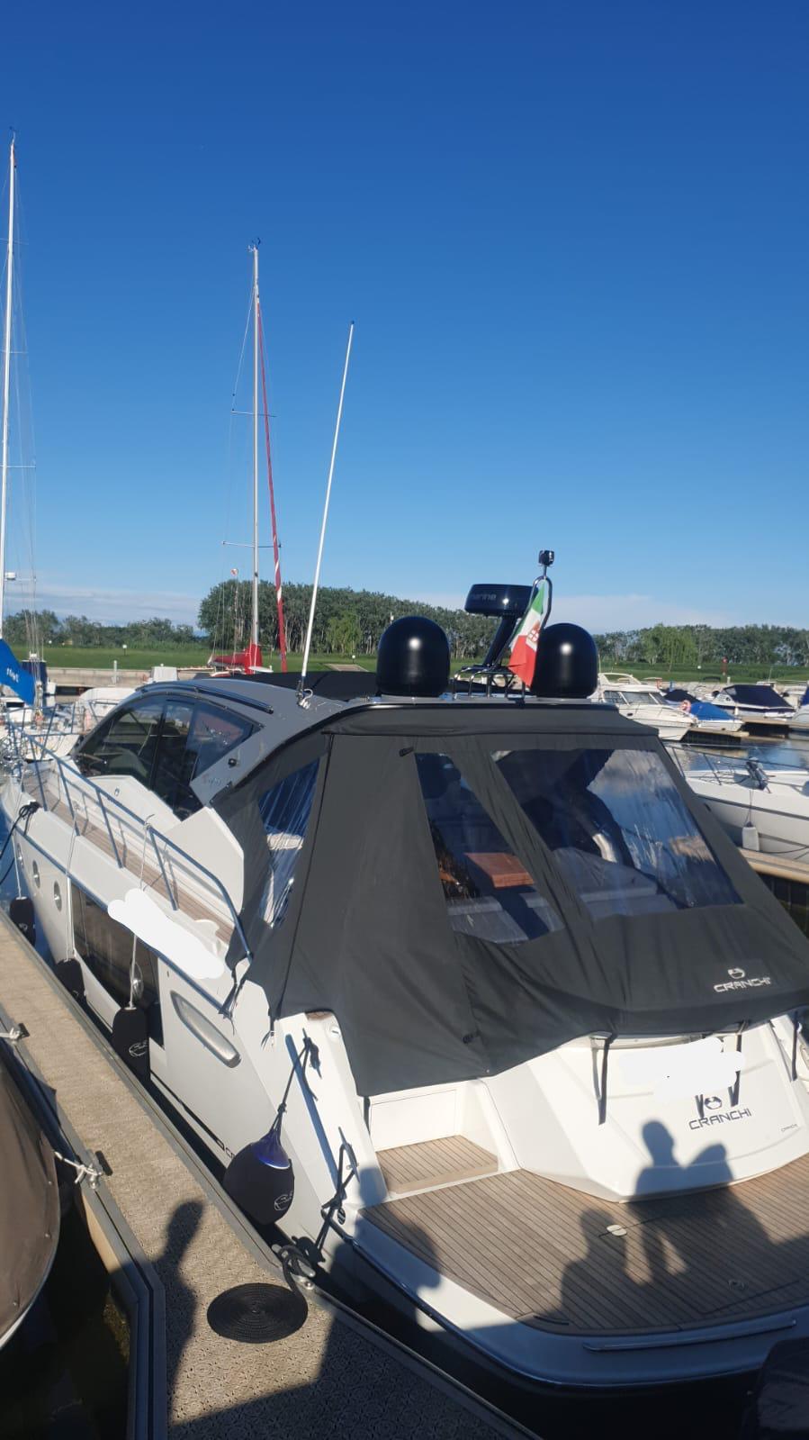 Barca Cranchi M44 HT usata anno 2021, motorizzata 2 x Volvo Penta D6 400 hp DPI con joystick, pochissime ore (circa 275).
