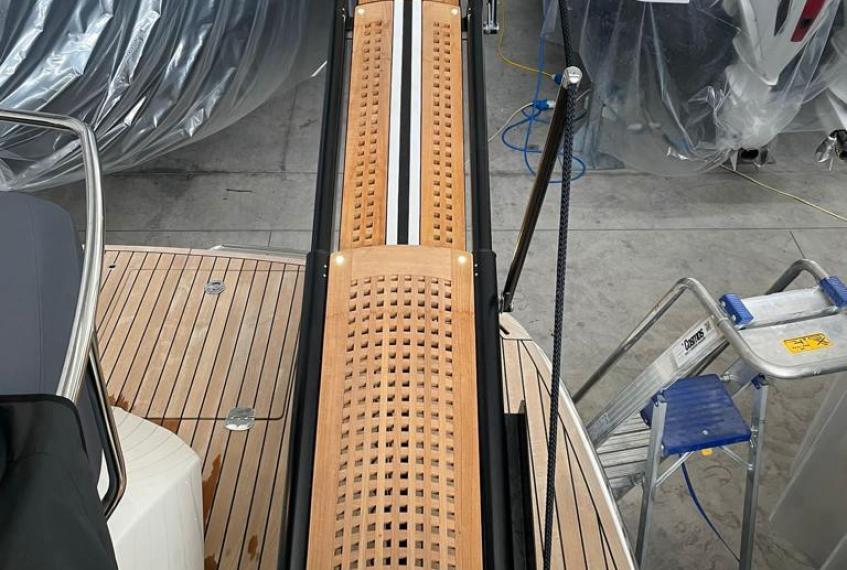 mt 2), Hard top (Verniciatura Hard Top+ Soft top in tela con colore alternativo allo standard), Passerella, Pozzetto Teak, camminamneti prua in teak, Presa 220V banchina, Salpancora Elettrico, Tavolo pozzetto (con verniciatura protettiva opaca, trasformabile in prendisole incluso cuscino)