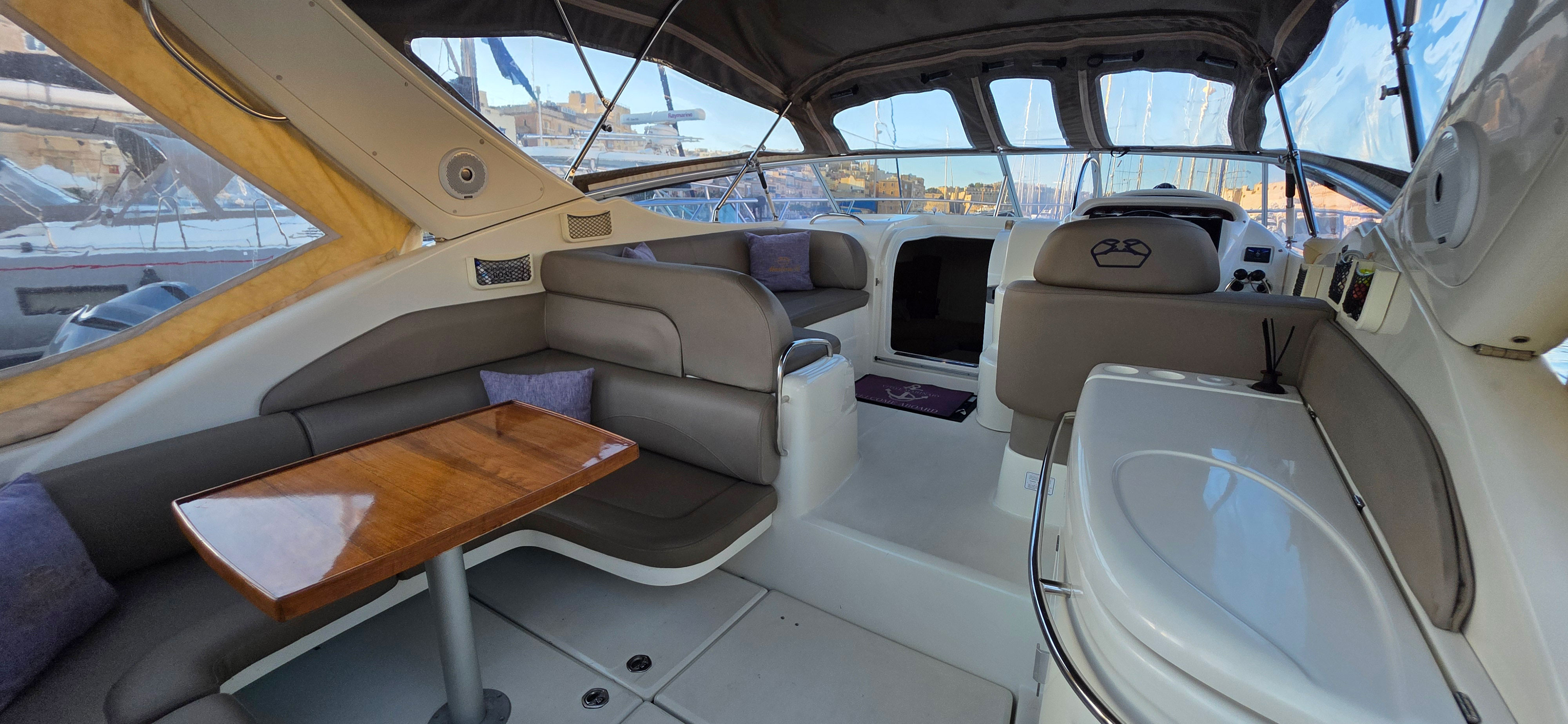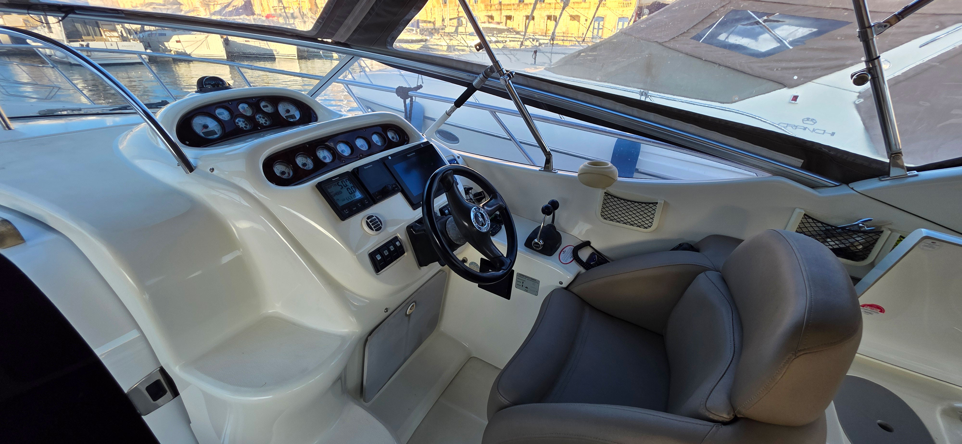 This well-kept Mediterranean cruiser offers an excellent balance of comfort, performance, and reliability. Powered by twin Volvo Penta D4 engines, the boat delivers efficient cruising and confident handling, making her ideal for family cruising and longer passages.