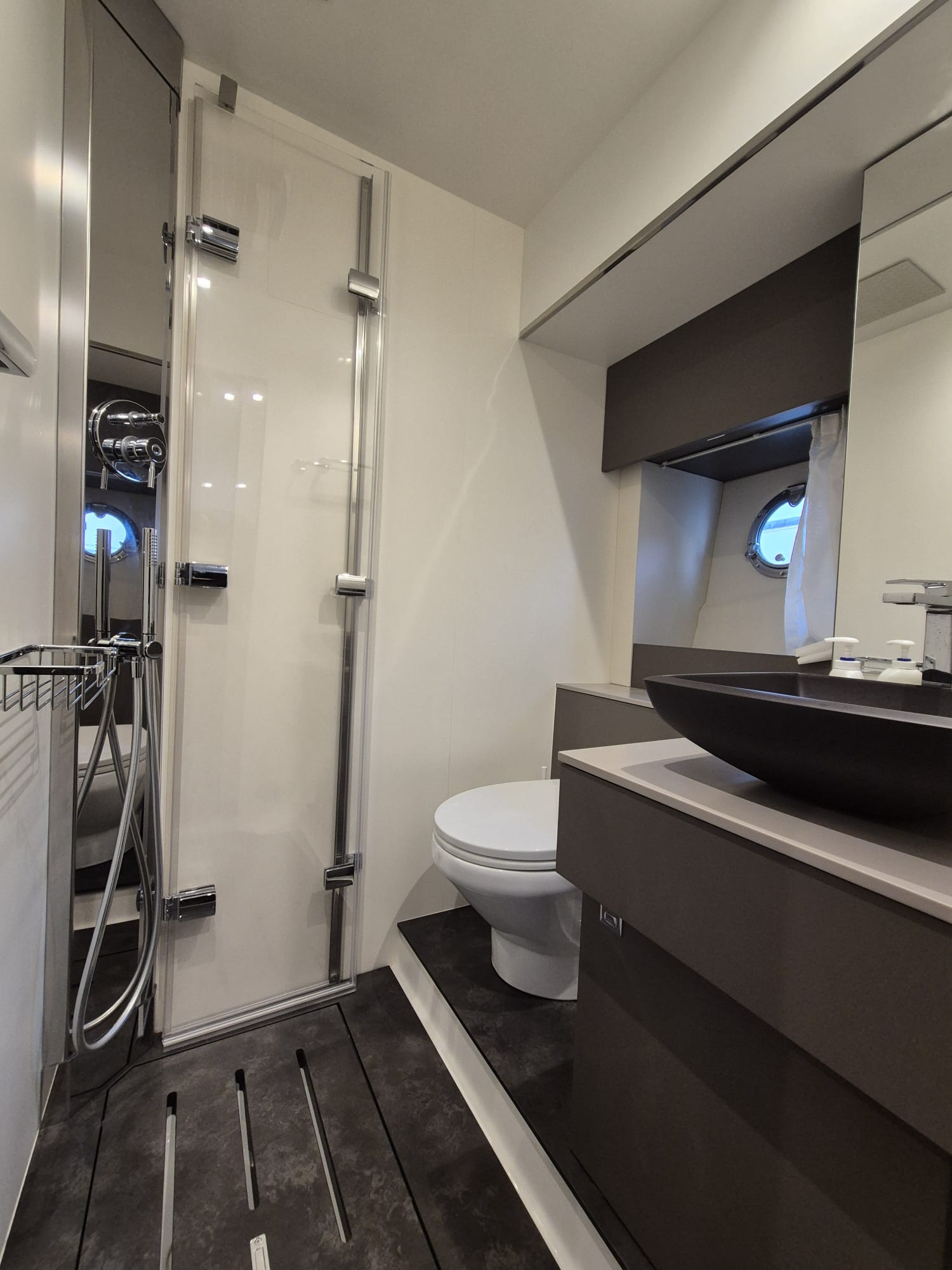 Thruster (with automatic fire extinguisher), cockpit table, Courtesy Lights, Deck Shower, Electric