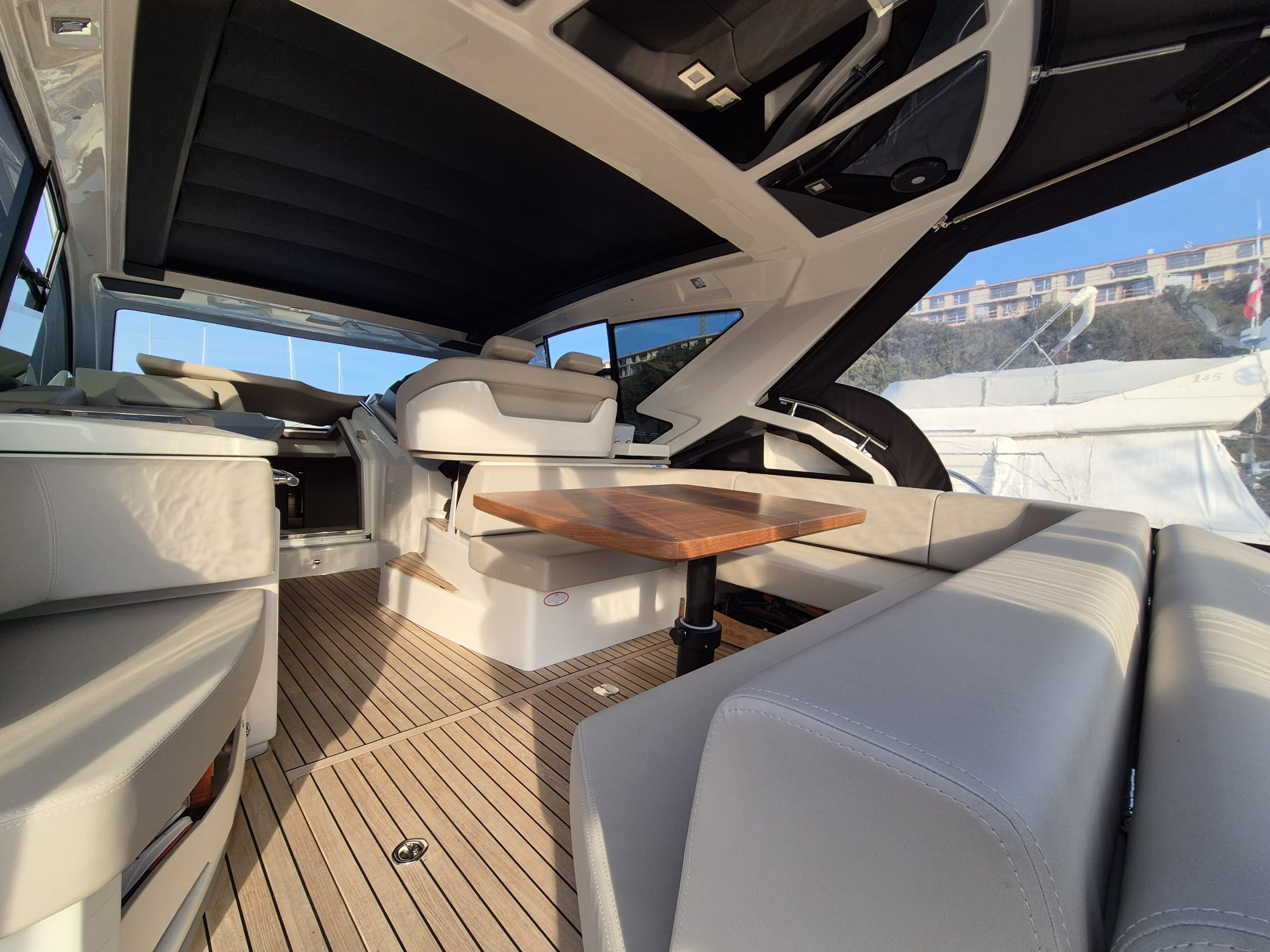Shorepower connector, swimming ladder, Teak Deckhouse, Teak Cockpit, Tender Garage, 3