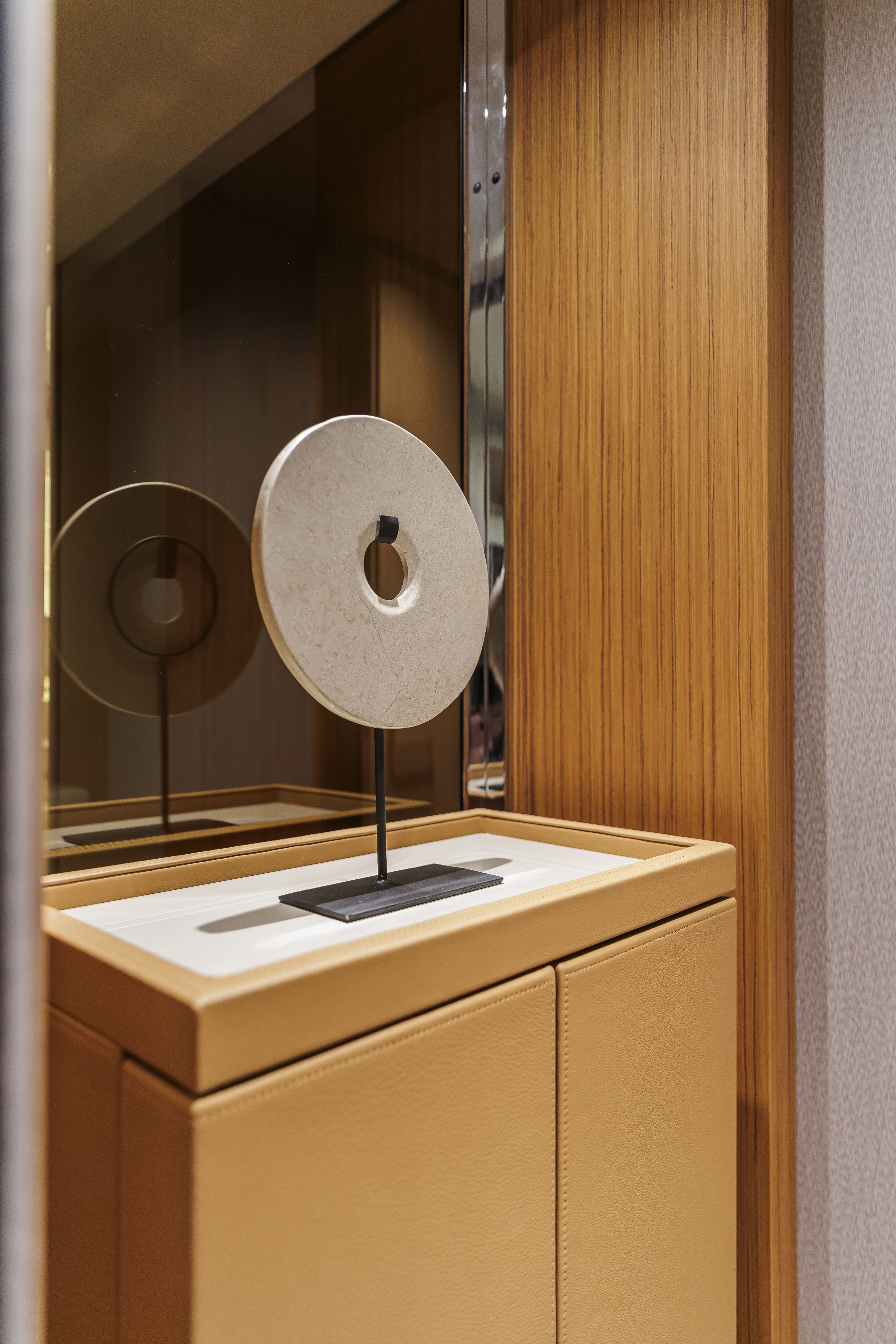 Un sofisticato abbinamento di essenze e superfici chiare, in cui si innestano a meraviglia le soluzioni di light design, donando luminosità e un senso di rilassato comfort.
