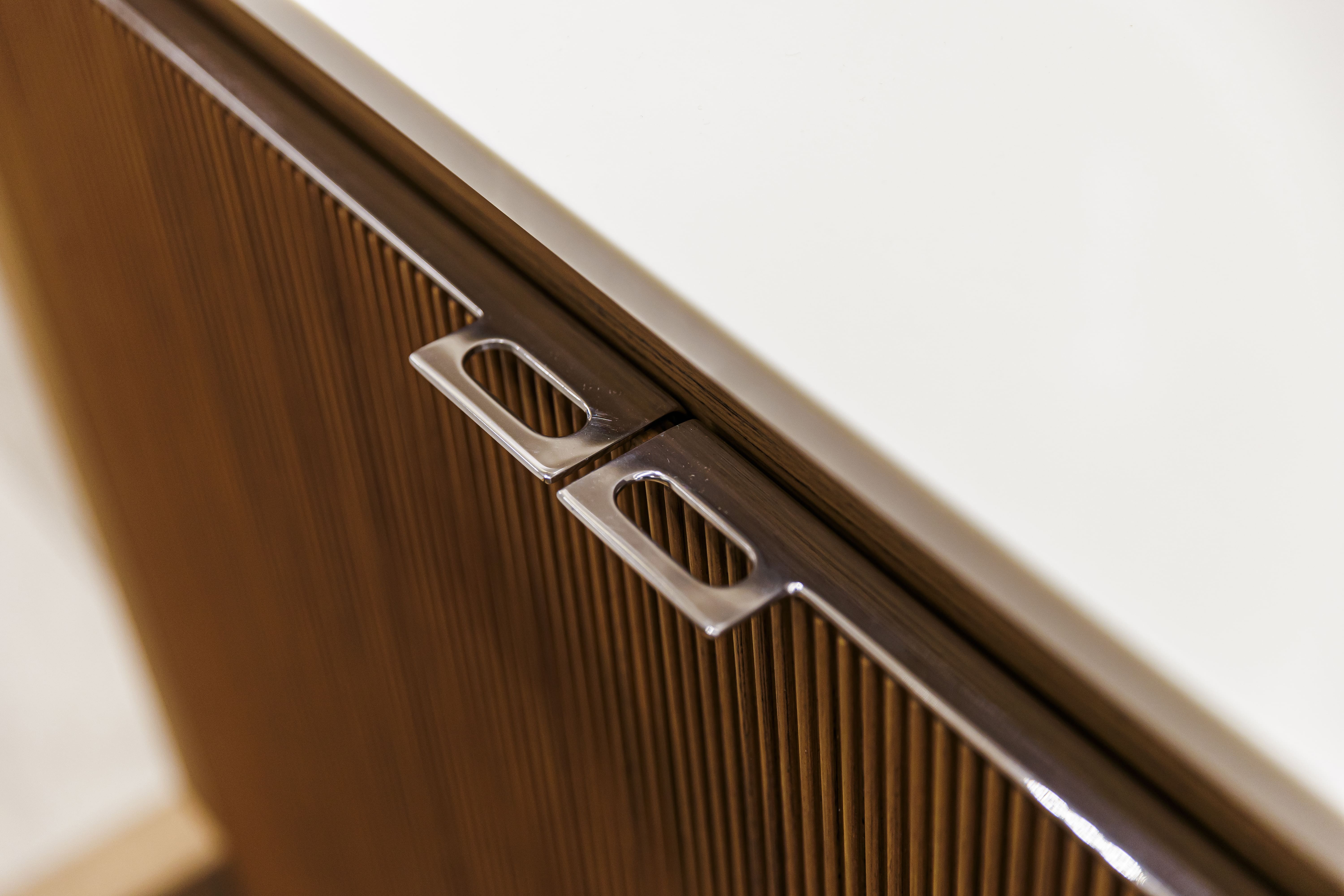 Questa nuance dall’eleganza sopraffina esalta il sapiente gioco dei pieni e dei vuoti, la leggerezza possente delle sue linee.