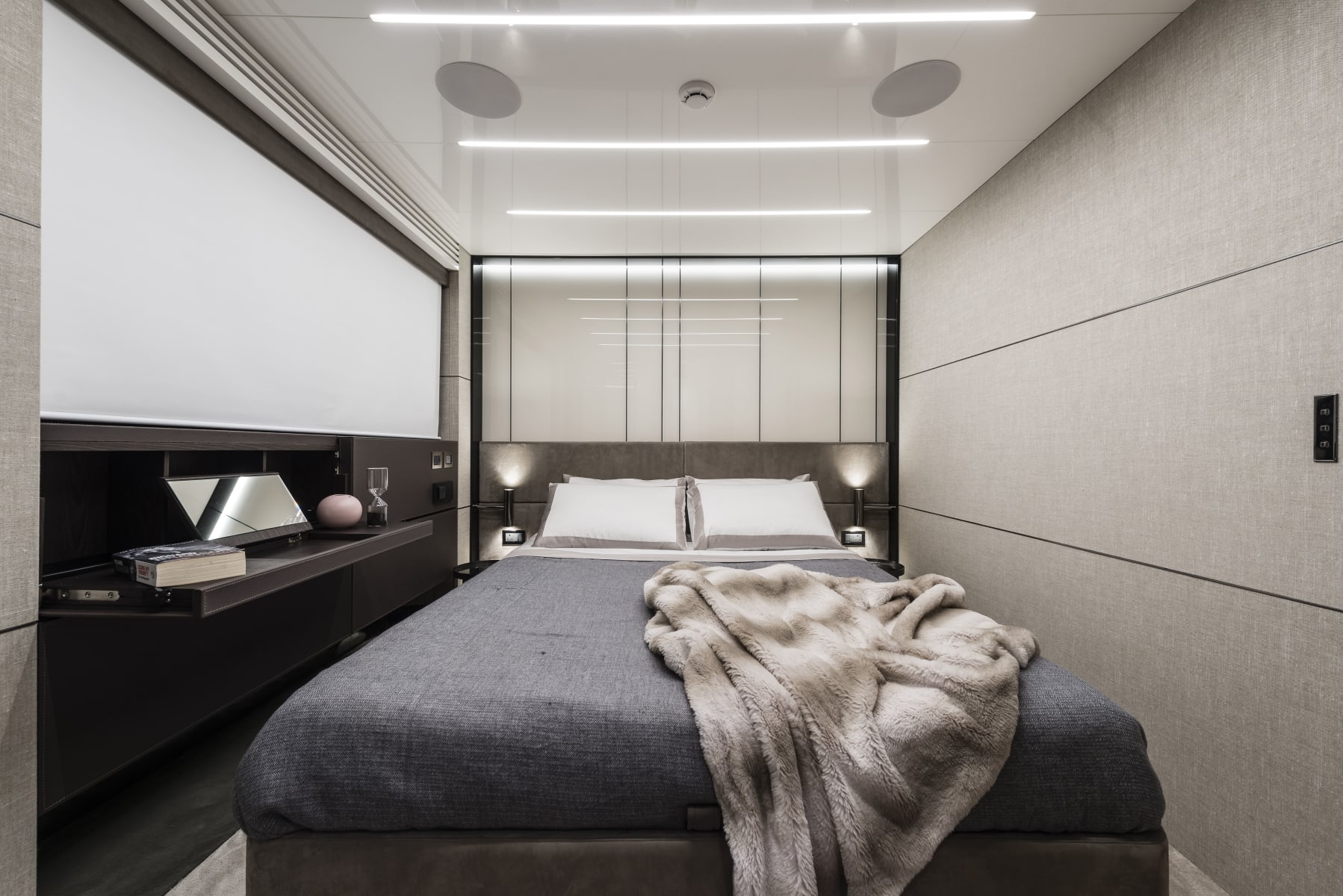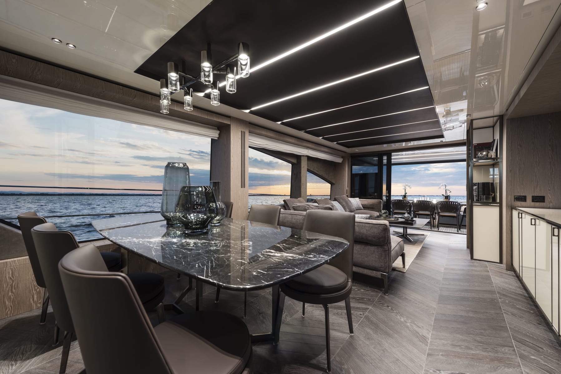 L'art direction del Settantotto è stata curata da Christian Grande e dal suo omonimo studio di design con base a Parma. Il grande respiro degli spazi ha ispirato scelte di design di matrice architettonica e residenziale, con un allestimento elegantemente contemporaneo che impiega elementi di arredo freestanding e finiture non ancora convenzionali nella nautica, come cristalli retro-verniciati e rivestimenti in tessuto per le pareti.